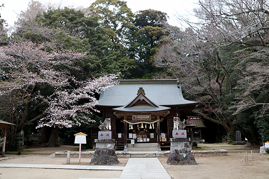 神社周辺の山桜はまだ開花していません。