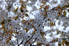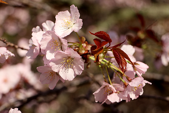 カスミザクラ系の『青毛桜』(公園前市道中ほど)が開花しています。